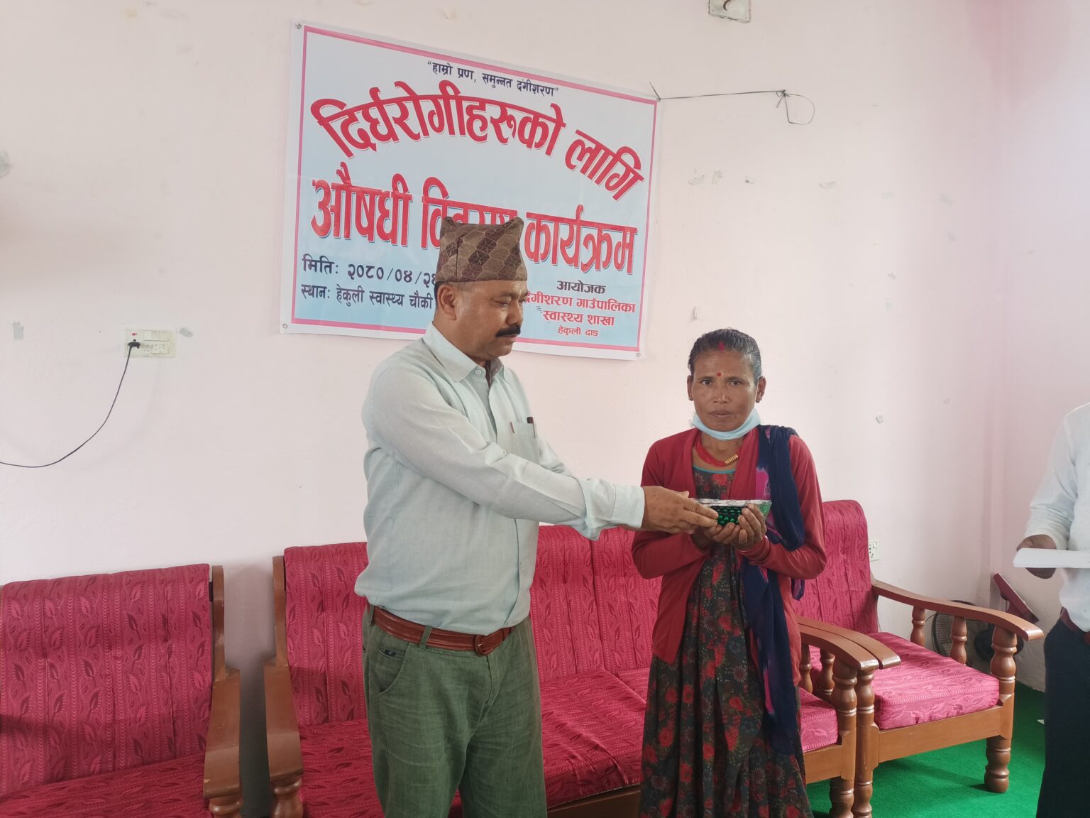 दिर्घरोगिहरुलाई नि:शुल्क औषधि वितरण गर्दै दंगीशरण
