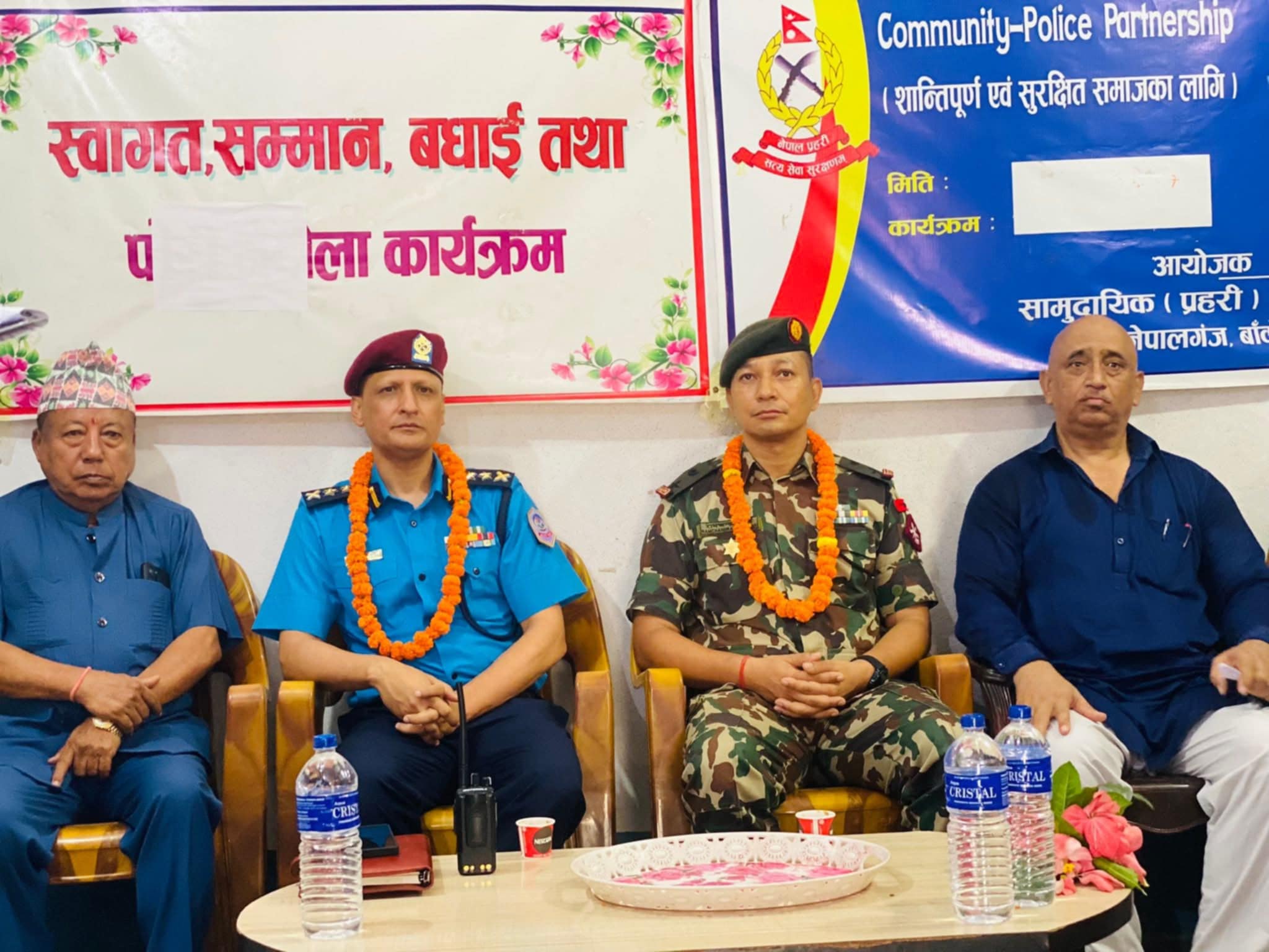 सामुदायिक प्रहरी सेवा केन्द्रको आयोजनामा बाँकेका प्रहरी प्रमुख र नेपाल सेना प्रमुखलाई स्वागत तथा सम्मान