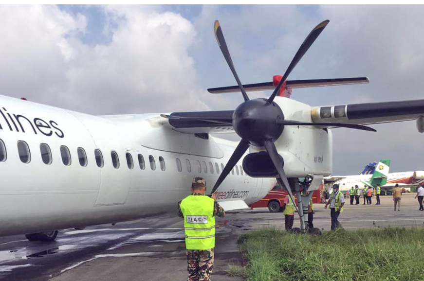 श्री एअरलाइन्सको जहाज घाँसे मैदानतर्फ चिप्लियाे